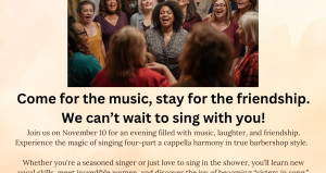 moreOur WINTER HARMONY WEEKEND features master 700 director Michael Gellert (Harbor City Music Co.) who will inspire you to "Sing with Freedom!". We will debut our Mother-Daughter (Grandmother... and Granddaughter...) Chorus and our Quartet Chorus (for...